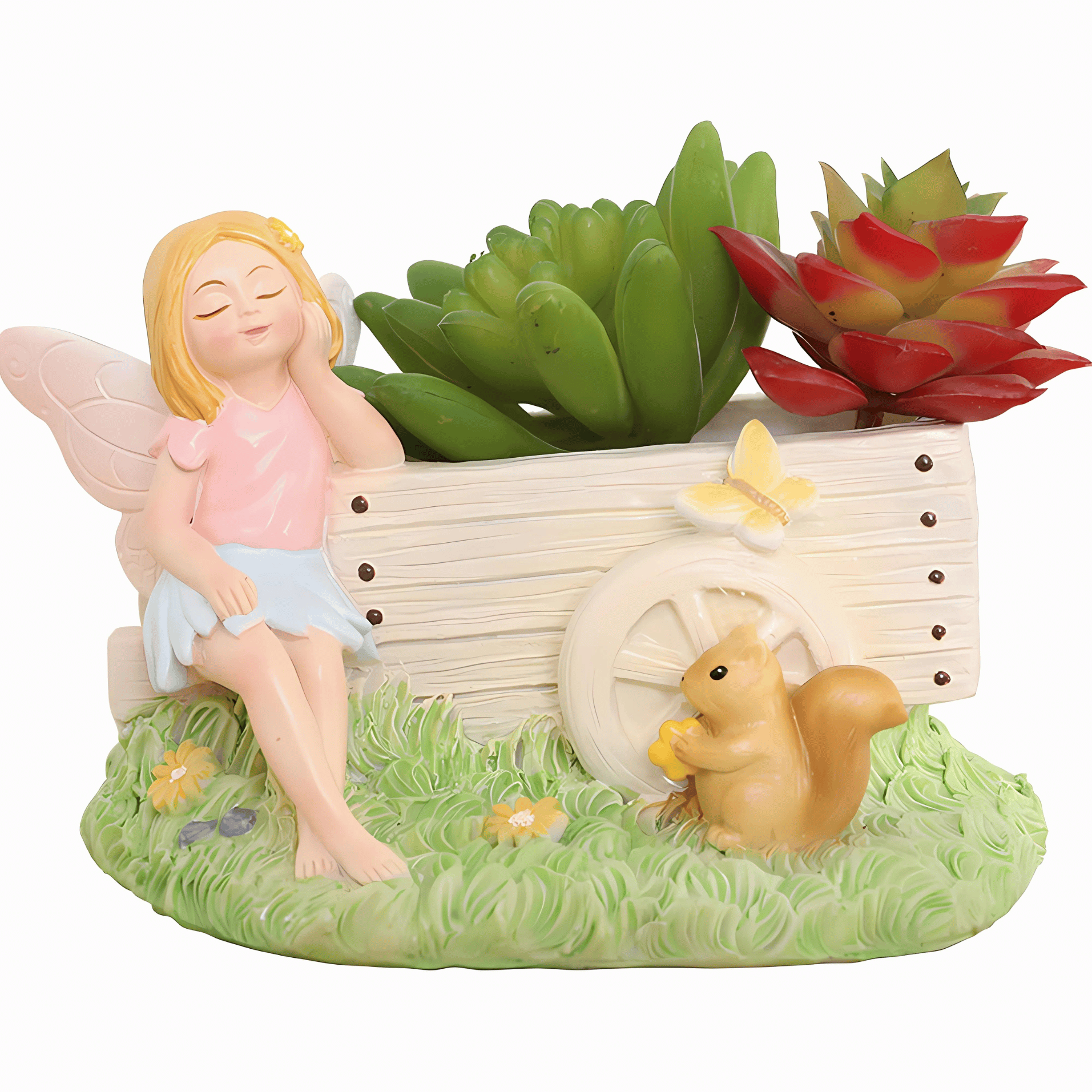 Beautiful Lady with Cart Resin Planter | Handmade Indoor & Outdoor Succulent Pot | Decorative Garden & Home Décor